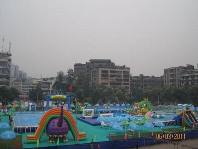 充气水池主要材料是加网PVC布料,厚度一般为0.9mm,大小可随时订制,一般池的形状为长方形的,当然也会出现其他不规则的形状,比如圆形,菱形。