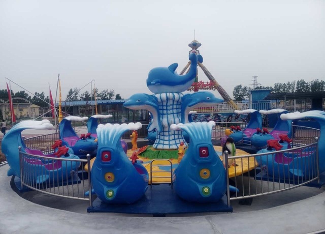 激战鲨鱼岛是河南jrs直播足球直播实业有限公司研发的一种新型的旋转类游乐设备,可乘坐24人。当设备开动时,游客一边乘坐会旋转的鲨鱼造型的飞船,一边可用船上的水枪或激光枪射击鲨鱼岛上的各种造型,当目标被击中后,便会做出喷水,发出叫声等各种动作,姿态可爱,趣味性强。而位居正中的鲨鱼先生被射中后还会喷出水柱,向游客发出攻击,使游客更能全身心的投入,从中享受乐趣。