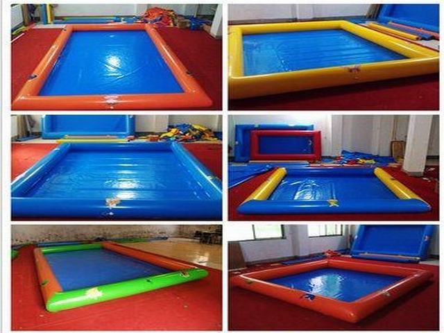 充气水池主要材料是加网PVC布料,厚度一般为0.9mm,大小可随时订制,一般池的形状为长方形的,当然也会出现其他不规则的形状,比如圆形,菱形。